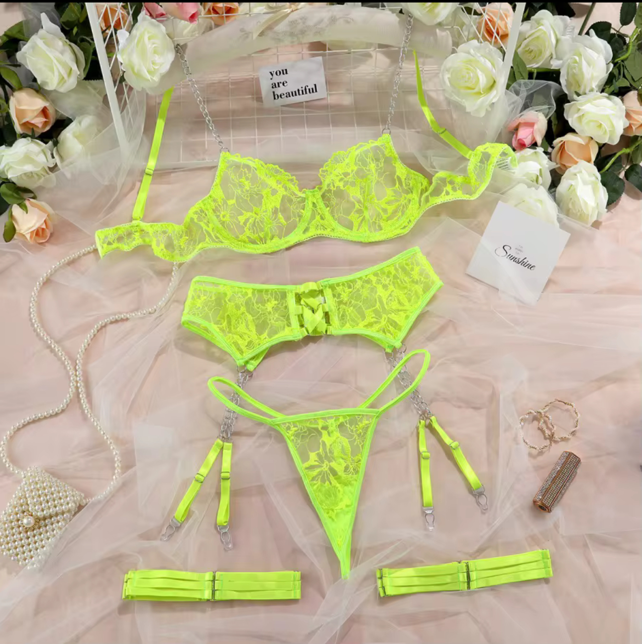 Neon Yellow Lace Chain Accent Set